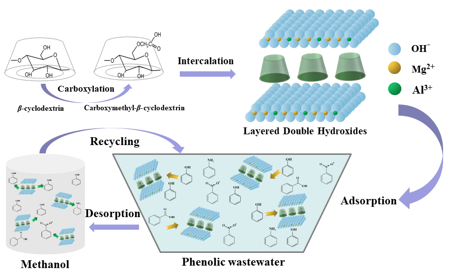 揭示了LDHs不同的金属元素组成、比例以及溶液pH值对苯酚及硝基苯吸附的影响规律;
