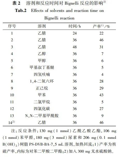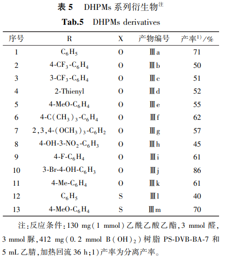 证明了硼酸树脂对Biginelli反应具有较好的催化活性,且具有较宽的适用范围;
