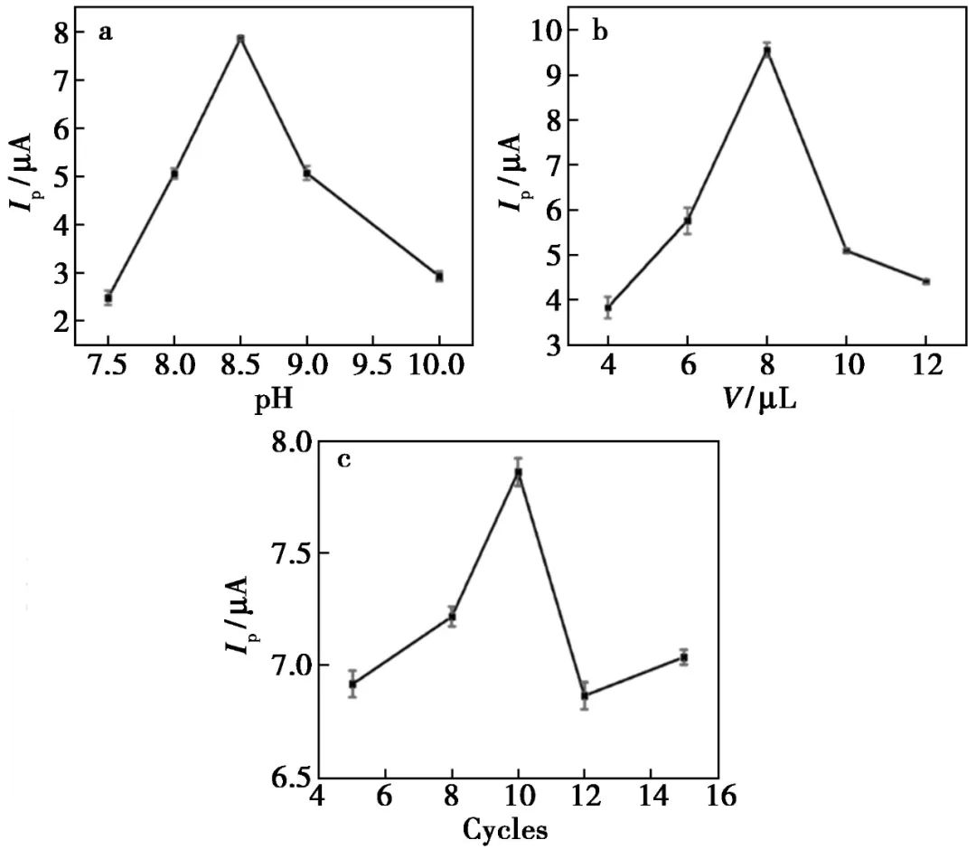 图3b表现了Lut的峰电位与C-MWCNT滴涂量的关系。2.3.3 PAR聚合圈数的优化