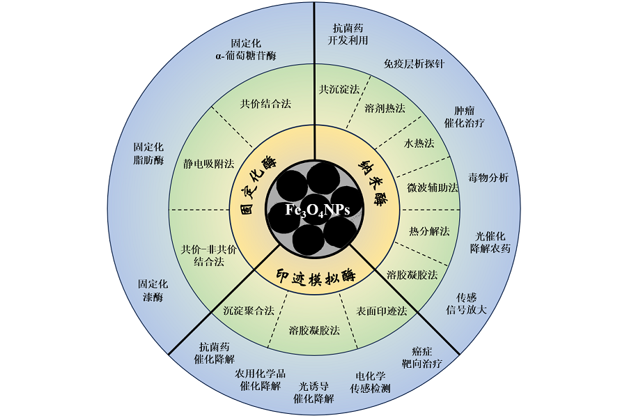 磁性纳米材料具有良好的生物相容性、优异的磁性能、低毒性和高比表面积,一直被认为是非常有前途的载体材料,被广泛用于提取、分离和传感识别等领域。酶是一种由活细胞产生的具有高效催化作用的生物大分子,为解决天然酶稳定性差、在极端条件下易失活等问题,固定化酶技术应运而生。用化学合成方法制备具有类似酶活性的人工模拟酶,是克服天然酶缺点的另一途径。