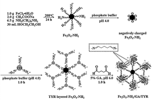 图3 Fe3O4-NH2/GA/TYR颗粒制备示意图[17]