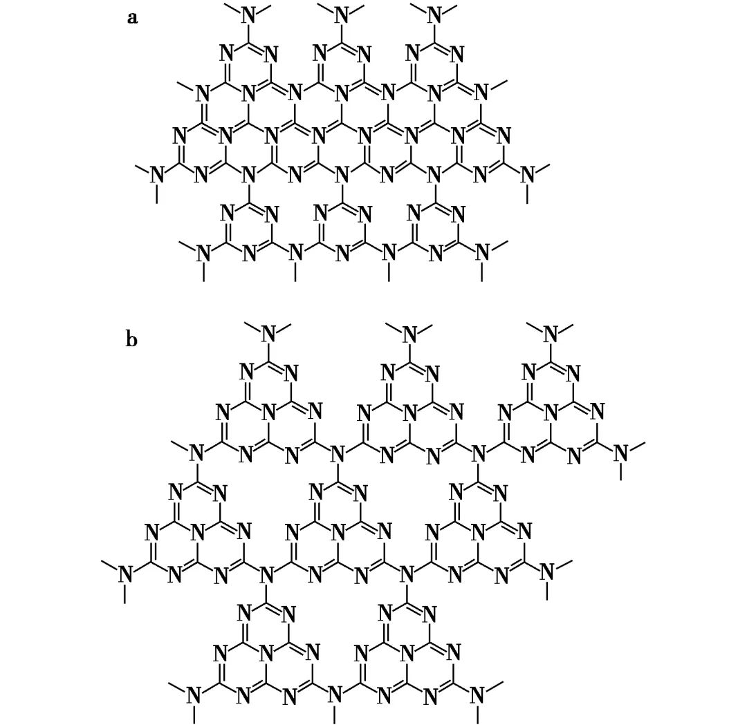 图1 氮化碳材料的基本单元:均三嗪(a),三均三嗪(b)
