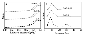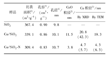 表1 Cu/SiO2和Cu/SiO2-N催化剂的结构特征注
