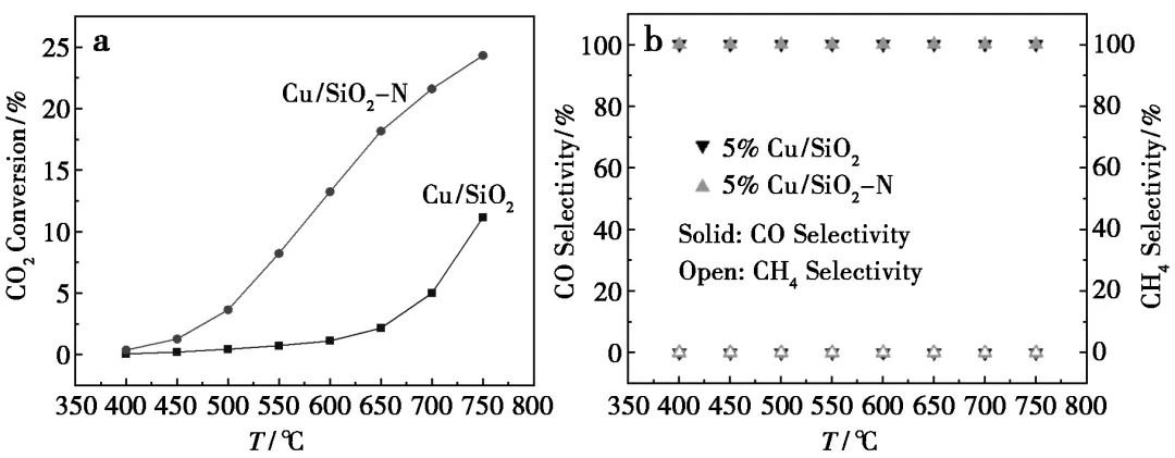 图5 Cu/SiO2和Cu/SiO2-N催化剂