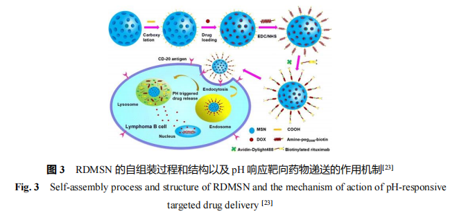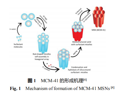 MSNs是由数百个孔道组成的固体材料,具有形貌尺寸可控、可功能化修饰、孔道规则有序且孔径连续可调等特点,可在其孔道内负载药物,并且通过对其表面进行功能化修饰,从而实现药物的靶向运输、缓释和控释等。