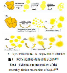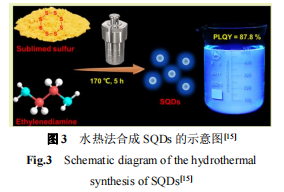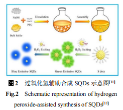 采用组装-裂变合成的SQDs虽然荧光量子点产率得了改善,但是反应周期仍然较长。为解决这一问题,Wang等[11]在2019年采用过氧化氢作为氧化剂,对硫点进行处理,合成SQDs(图2)。