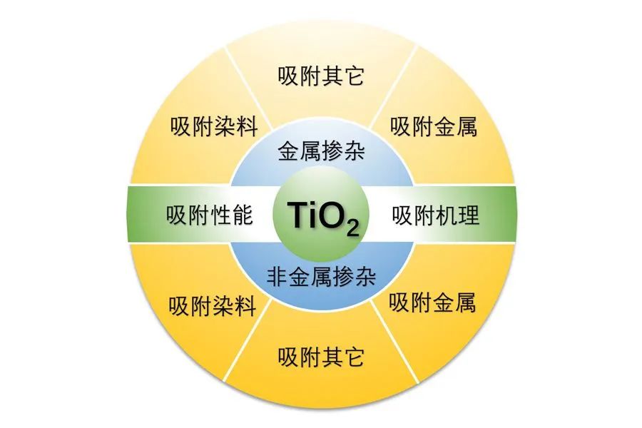 1.总结了近年来无机物掺杂TiO2吸附剂在吸附水中污染物方面的研究,比较了不同改性策略下TiO2基吸附剂的性能;