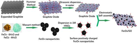 磁性石墨烯复合材料的制备主要采用物理和化学方法。物理方法包括直接磁化法;化学方法包括水热法、气液界面法、电化学法、化学共沉淀法、溶胶-凝胶法和化学接枝法等。这些方法都能在温和条件下进行,具有可操作性和可控性,可根据需求灵活调节合成条件。