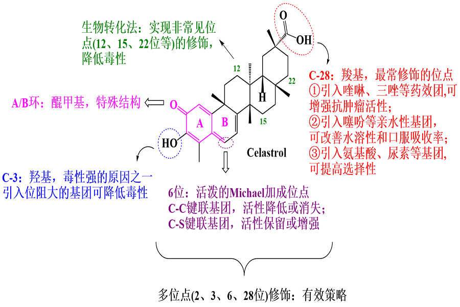 1.根据不同的修饰位点和修饰策略分类综述了近年来雷公藤红素结构修饰的研究进展;