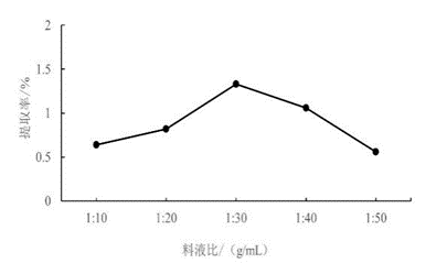 料液比对艾叶多糖提取率的影响如图2所示,考虑到所得到的多糖提取率和后期浓缩工艺[18],选择料液比为1∶30(g/mL)比较合适。