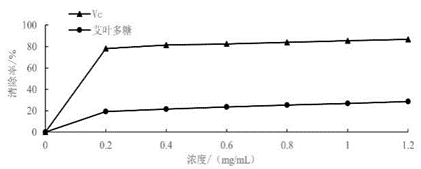 艾叶多糖溶液和维生素C溶液在0.2~1.2 mg/mL浓度范围内对DPPH清除能力如图8所示。