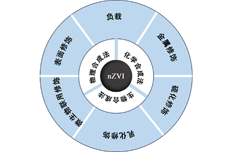 综上所述,无论是物理、化学还是生物合成方法都可以有效的合成nZVI。物理合成方法操作简便、环境友好,但受限于合成设备的专业性和较为严格的合成条件。相比之下,化学和生物合成法操作更为简便、灵活,反应条件可控,合成的nZVI尺寸更均匀,为nZVI的合成提供了更多的选择。无论哪种方法合成的nZVI都可能因团聚或钝化而影响其表面结构,需要进一步的修饰以维持其化学活性。