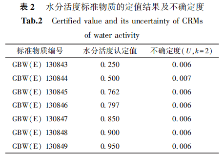 使用带有冷镜露点传感器的水分活度仪来测量标准物质候选物。水分活度仪用LiCl、氯化镁、NaCl和溴化钾的饱和溶液进行校准。