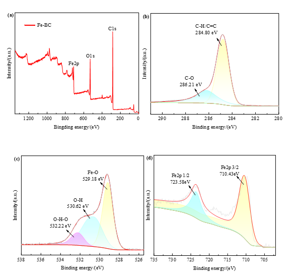 1.以湿地废弃植物香蒲为原材,通过热解与水热合成,成功制备磁性铁改性生物碳(Fe-BC),能实现水中典型有机污染物刚果红(CR)染料的吸附去除,且Fe-BC能重复利用,实现了以废治废,变废为宝;