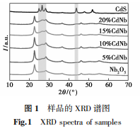 图1为制备的Nb2O5、CdS和xCdNb样品的XRD谱图。