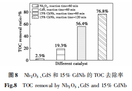 图8比较了Nb2O5、CdS和15%CdNb对总有机碳(TOC)的去除效率。