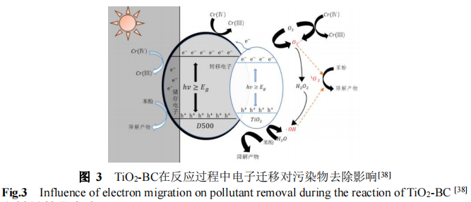 生物炭作为载体具有导体特性,不仅在复合材料中起到电子储存受体的作用,也可以通过转移电子来提高反应活性[36]。
