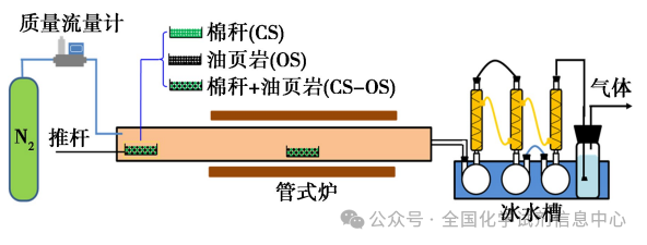 1、采用棉秆和油页岩共热解制备生物炭,通过考察生物炭的热解条件(热解时间和热解温度)、CS和OS的比例和CS粒径,提高棉秆和油页岩共热解生物炭的吸附性能;