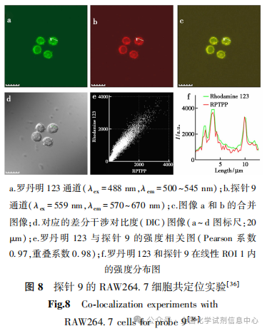 荧光探针在线粒体内积聚是由膜电位驱动的,带有三苯基膦阳离子(TPP+)单元的探针可以选择性地聚集在线粒体[35]。