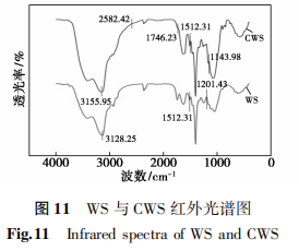 将WS和CWS经蒸馏水洗涤数次后于60 ℃真空干燥箱下烘干,利用KBr压片法进行红外光谱表征分析,结果如图11所示。