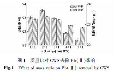 2.1.1 反应物质量比对CWS吸附Pb(II)的影响
