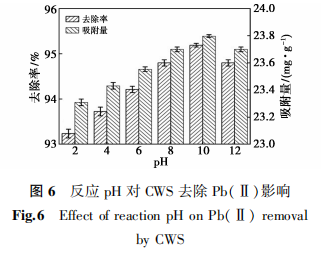 2.1.6 pH对CWS吸附Pb(II)的影响