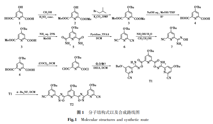 1.2.4 (2Z,2'Z)-N',N'''-((4-异丁氧基吡啶-2,6-二羰基)双(氧))双(6-氰基-4-异丁氧基吡啶甲酰亚胺)(T1)的合成