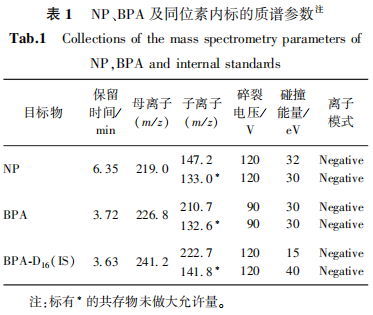 高效液相色谱串联质谱法分析沉积物中壬基酚和双酚A