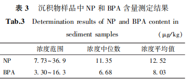 采用本文优化得到的实验条件对采集的土壤沉积物样品进行分析。样品经1.2.2方法处理后,在 1.2.3仪器条件下进行检测。结果表明该批样品中壬基酚含量范围为7.73 ~ 36.9 μg/kg,双酚A的含量范围是3.30 ~ 16.3 μg/kg,样品浓度信息如表3所示。说明该采样点具有一定程度的壬基酚和双酚A 的暴露风险,亟需进一步对其开展研究。