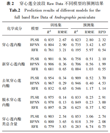 2.4.1 基于全波长数据预测穿心莲中4种穿心莲内酯类化合物的含量