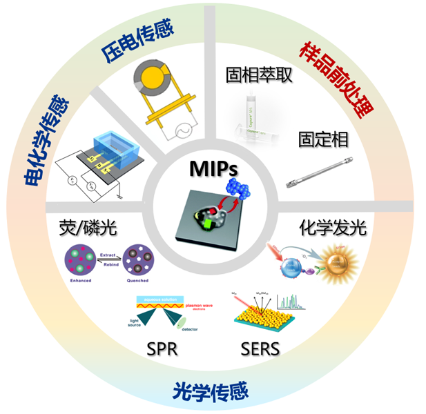2.文章结合食品中真菌毒素检测实例综述了MIPs在样品前处理、光学传感、电化学传感、压电传感等领域的最新应用研究进展;