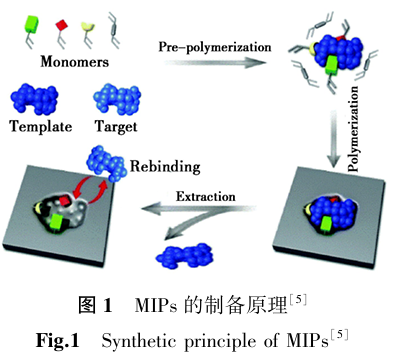 MIT的原理类似于锁钥模型,是一种以目标分子或其结构类似物为模板分子,通过聚合反应构建模板分子的特异性识别位点,随后洗脱模板,制备出大小、形状和功能基团与模板互补的MIPs的技术[5]。