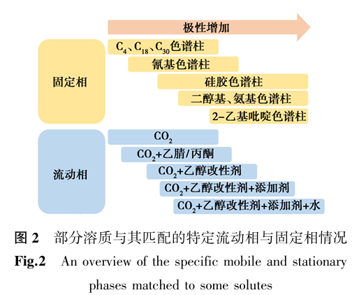 通常情况下,SFC被视为一种适合于分析疏水性或低极性化合物的正相色谱。然而,通过加入极性有机改性剂和添加剂,可以增加流动相极性,使SFC也可以用于洗脱极性化合物。极性的大小影响物质在色谱柱上的保留时间,通过固定相与流动相极性的改变,可以将检测物从复杂基质中有效分离出来(图2)。