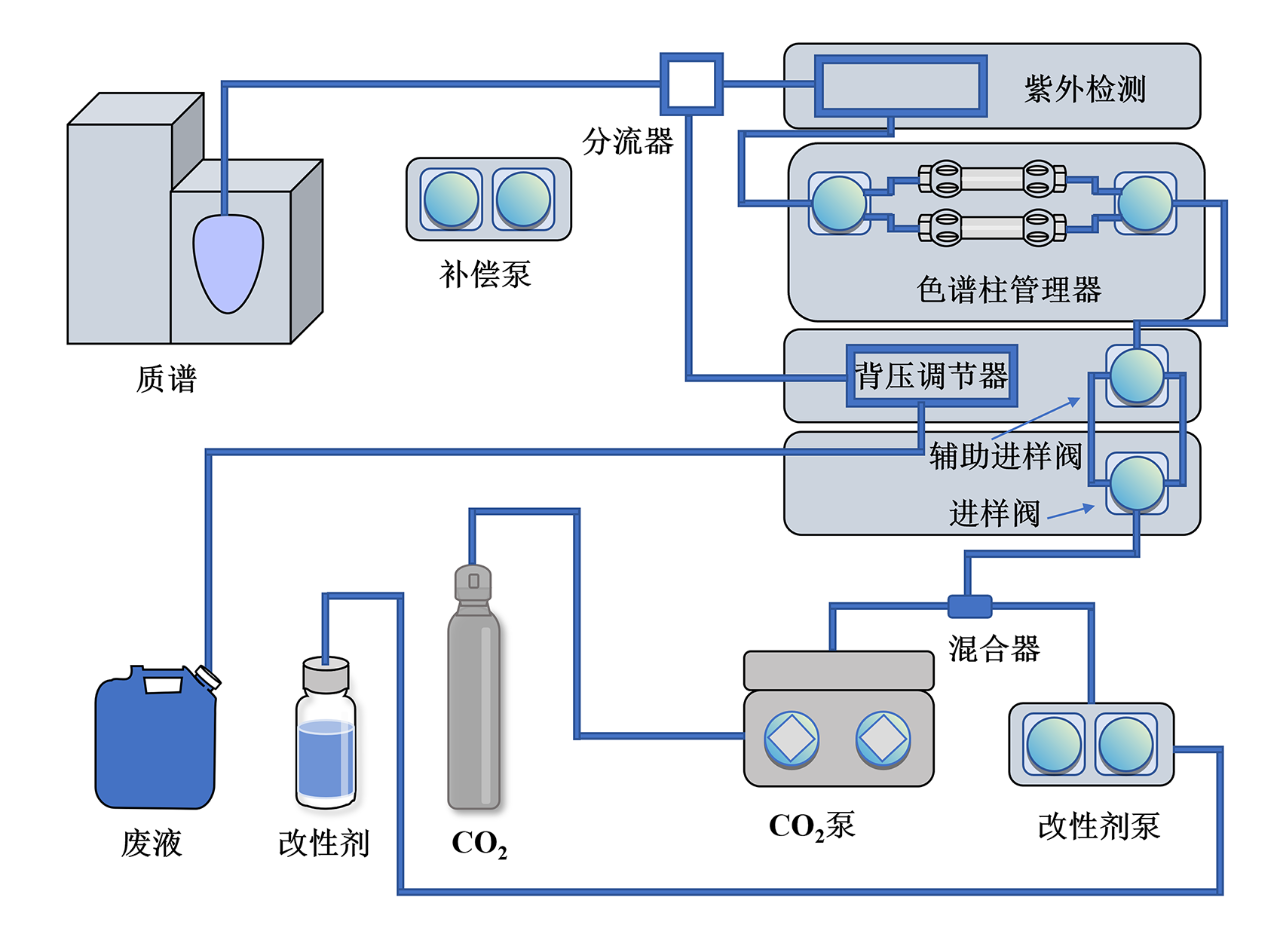 超临界流体色谱技术有望在分离技术领域引发一场重大的变革。使用超临界二氧化碳作为流动相,使其具有比液体更好的扩散性、更低的粘度以及更低的成本等优势,超临界流体色谱成为液相色谱和气相色谱的重要补充。当超临界流体色谱技术与高灵敏度和高特异性的质谱检测器结合使用时,能够广泛应用于极性和非极性化合物的分离,甚至可以用于手性异构体的分离。近年来,超临界流体色谱-质谱联用技术已经在多样化的分析领域中得到了广泛的应用。