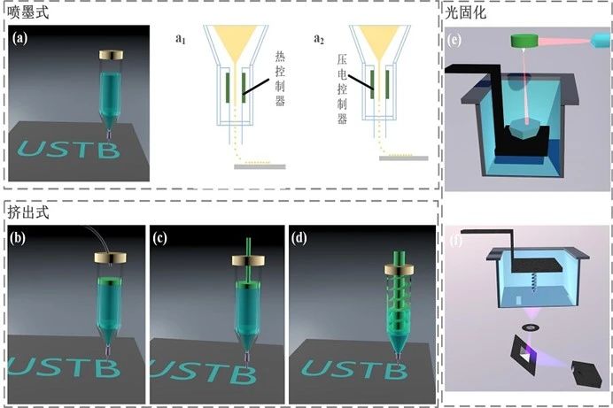 2.讨论了常用的3D打印技术原理,包括喷墨式3D打印、挤出式3D打印以及光固化3D打印(立体光固化成型和投影式光固化成型);