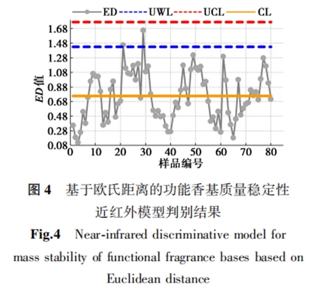 质量特性指标服从正态分布是适用3σ控制原则的前提条件。因此,选择欧氏距离、全成分斜率相似度作为构建功能香基质量稳定性近红外模型的特征变量。