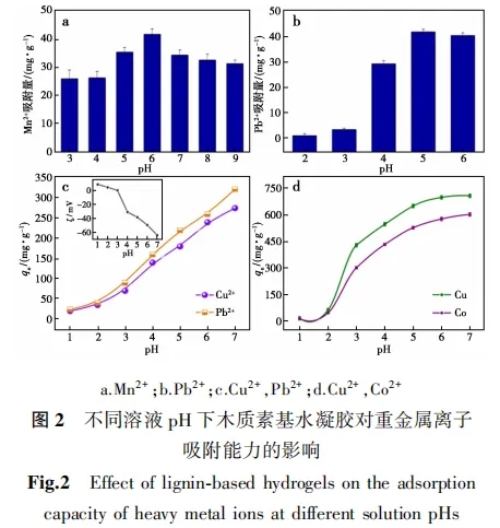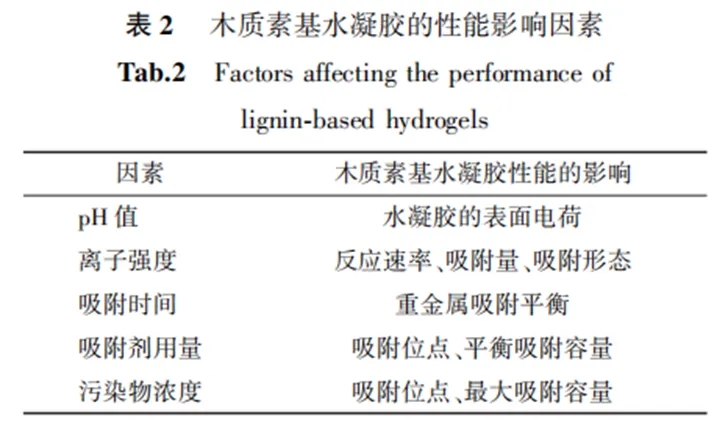 木质素基水凝胶的重金属去除能力受到pH值、离子强度、吸附时间、吸附剂用量等多种因素的影响[37]。