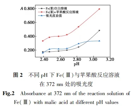 在固定Fe(III)和苹果酸浓度的条件下,改变反应体系的pH,测得不同pH条件下反应溶液在372 nm处的吸光度如图2所示。