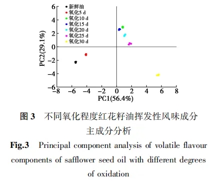 2.4 不同氧化程度红花籽油关键挥发性成分的主成分分析
