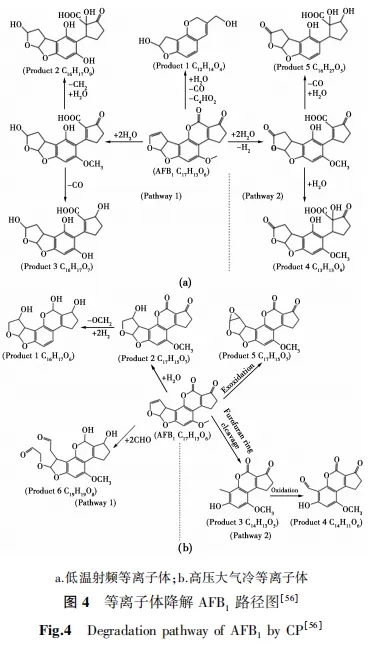等离子体(CP)是一种电离气体,由几种反应物质组成,包括光子、正离子和负离子、分子、电子和自由基。根据温度分类可分为高温和低温CP,根据压力可分为大气压、低压和常压CP。根据放电方式可分为电晕放电、辉光放电、介质阻挡放电CP等。CP是一种新型的、比传统方法更有效的去除食品及农产品中真菌毒素的方法,其中以AFTs最为典型[56]。.jpg)