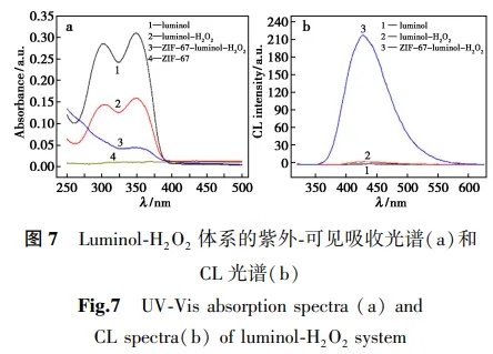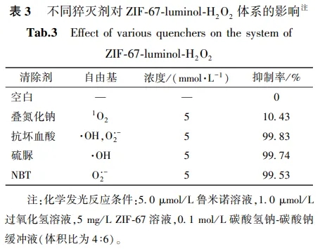 通过ZIF-67-luminol-H2O2化学发光体系的紫外可见吸收光谱、化学发光光谱和自由基猝灭试验对ZIF-67-luminol-H2O2体系的化学发光机理进行探讨(图7和表3)。.jpg)
