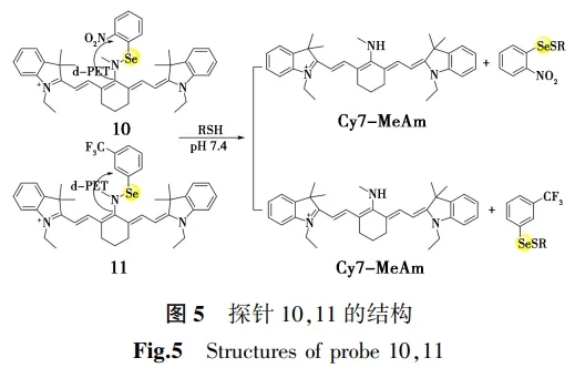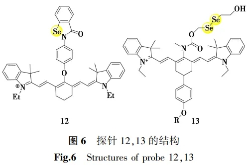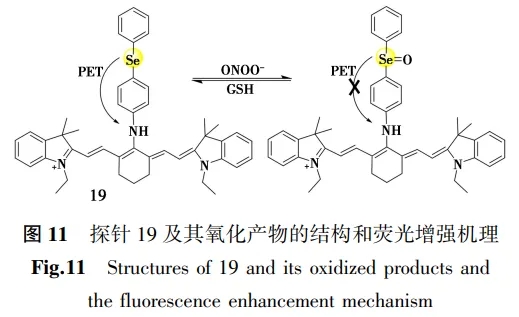 2011年,Yu等[48]报道了一种基于有机硒官能团的近红外可逆荧光探针19(图11),可用于生理条件下水溶液和活细胞中对过氧亚硝酸根氧化还原表现出高灵敏度和选择性。