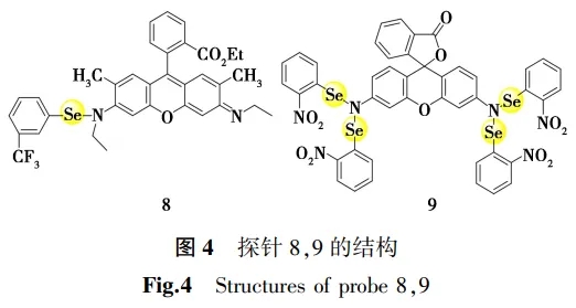 3.在荧光探针发光团的设计中,当硫原子被硒原子取代时,其探针的吸收和发射波长会增长,该性能为比率型荧光探针的设计提供了思路。