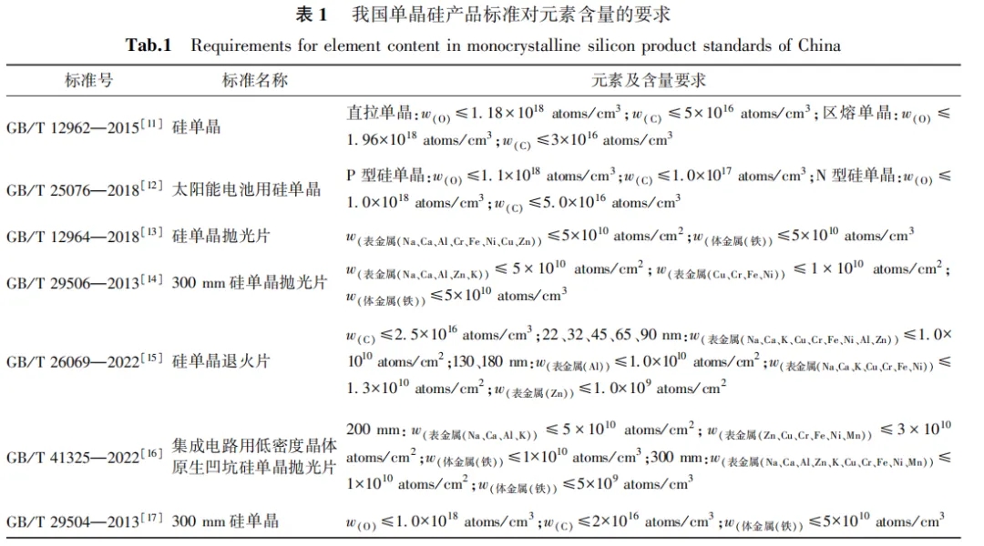1.综述了我国单晶硅产品标准中对元素种类和含量限值的要求;