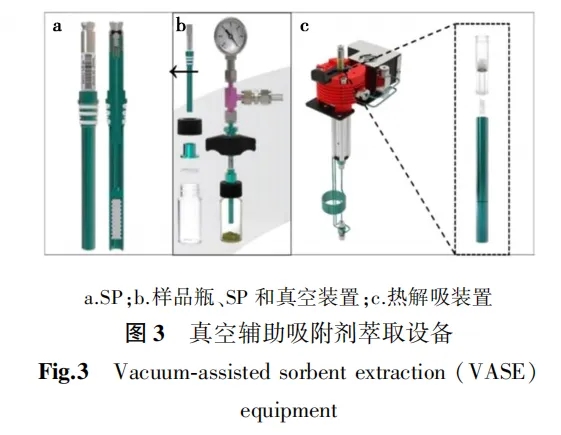 真空辅助萃取(VA)特别适用于低挥发性有机物。真空辅助吸收剂萃取(VASE)还可以对TD管进行改性称为吸收剂笔(SPs),用于VA的萃取(图3)。