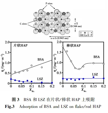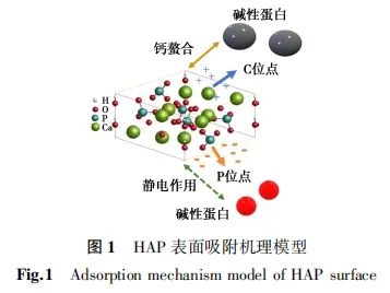 如图1所示,HAP晶体表面具有带负电荷的磷酸基团(P位点)以及带正电荷的钙离子(C位点)。蛋白质吸附、富集到HAP表面的作用力主要有静电作用、氢键和范德华力,具体发生作用的力可能是其中的一种或多种[11]。