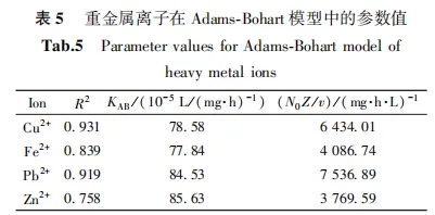 用于预测吸附质在固定床上的动态吸附行为的经验模型被称为穿透曲线模型,它为吸附柱结构参数的设计和优化以及工业生产提供数据支持[24,25]。常见的模型有Adams-Bohart模型、Thomas模型、Yoon-Nelson模型[26-28]。