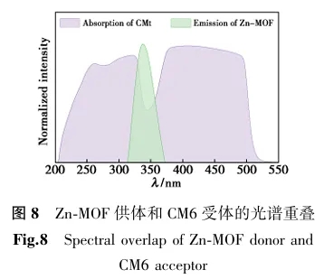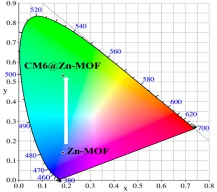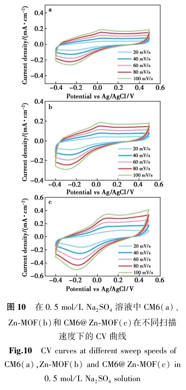 2.CM6@Zn-MOF的CV 曲线有更为显著的氧化还原峰,说明掺杂CM6可以提高材料的电化学性能,加之拥有较宽的集光区域,有望成为光电应用新材料;