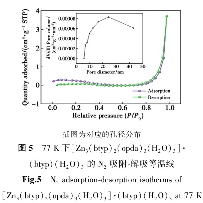 图5为[Zn3(btyp)2(opda)3(H2O)3]·(btyp)(H2O)3的N2吸附-脱附图,测试温度为77 K。