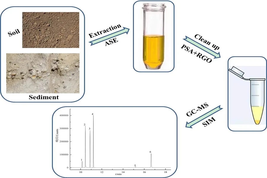 1. 建立了加压流体萃取-改进QuEChERS-气相色谱质谱法测定土壤和沉积物中4种新污染物的检测方法,并验证了各项分析性能指标;2. 通过改进QuEChERS净化剂,引入含较少氧基团的还原氧化石墨烯(RGO),摸索出前处理最佳净化剂配比条件,能更好的去除样品提取液中杂质,改善色谱分离效果;3. 方法适用于批量样品的快速检测,提升工作效率,为测定土壤及沉积物中的持久性有机新污染物提供技术支持。